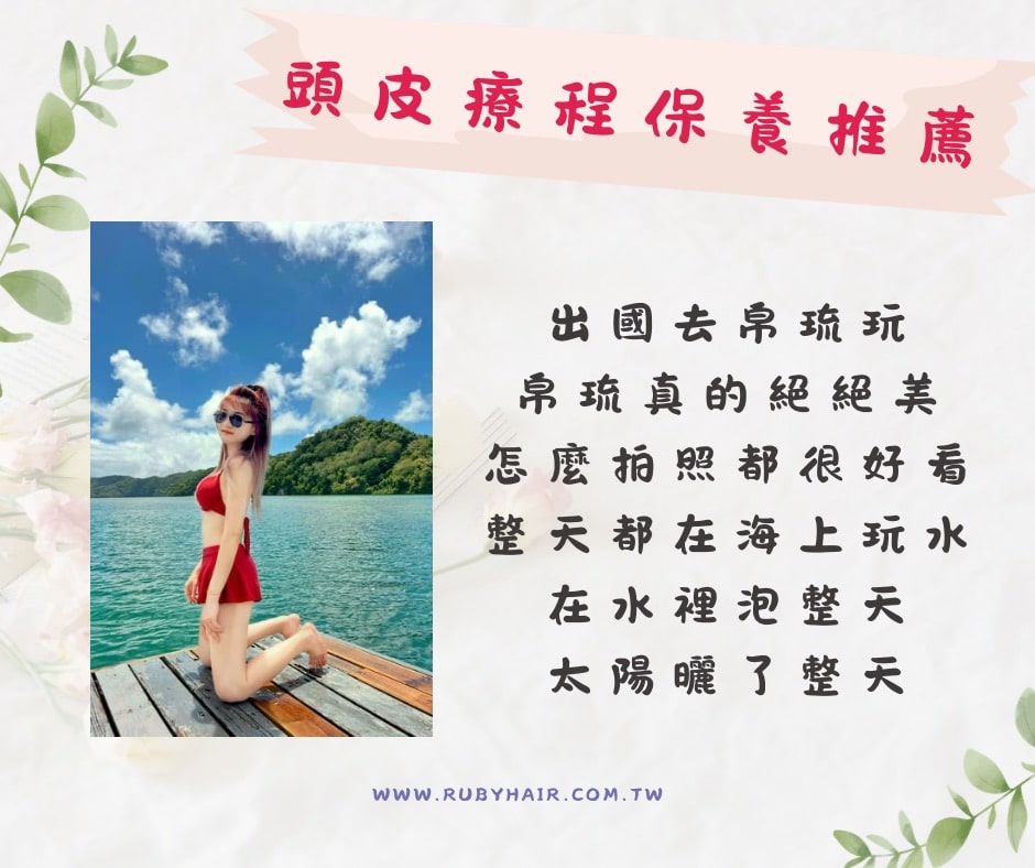 【頭皮保養療程推薦】 帛琉之旅 絕美海景 頭皮曬傷 造成頭皮刺痛 頭皮敏感紅腫 脫屑 大塊皮屑 掉髮困擾 毛囊炎 | 綵彤髮屋