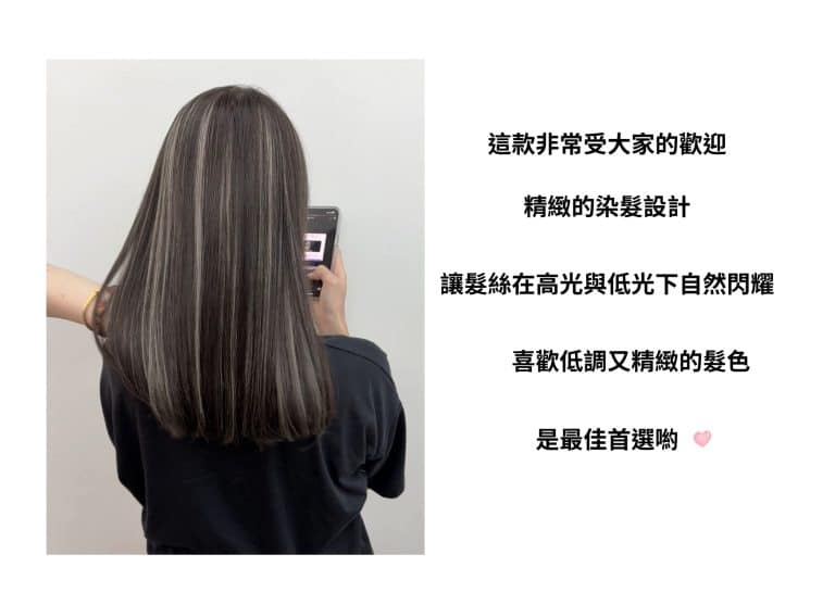 ✵ 染髮文案 【高雄鳳山染髮推薦】白髮共存 挑染灰色 質感髮色推薦 最熱門髮色 今年一定要染上的髮色 | 25 11 月, 20184 11 月, 2025 作者: 王 品寰 已觀看的寶寶們 : 4,381 2025髮色推薦 2026染髮趨勢 高雄染髮推薦 特殊色漂染 光線漂染 手刷染 歐美髮色 生活色推薦日系髮色 霧感髮色 白髮共存 灰色挑染 ♥ 質感又好看 如果你也喜歡這種染髮設計 趕快預約私訊寰寰幫您變美美的唷 ^^ ✵ ✵ ✵ 維持手刷染髮色教學 染後保養 不管任何漂髮、挑染造型,有漂過的頭髮通常只要碰到水就會開始掉色,手刷染後回家第一次洗頭時,可以馬上使用 護色洗髮精、矯色洗髮精也定期到髮廊做結構護髮以及護色補色療程唷 ^_^ ✵ ✵ ✵ 寰寰 是完全預約制 ♥👇 趕快 + 賴私訊預約唷 😉 ✵ ✵ ✵ 除了染上美美的頭髮想要有光澤柔順的髮質趕緊預約品寰老師做護髮療程囉^^ ✵ ✵ ✵ 超美夢幻質感髮色推薦 <色卡作品線上看>點以下圖片可以連結到文章 ^^ ✵ ✵ ✵ 沿用文章 … <頭皮文案.觀念知識QA>點以下圖片可以連結到文章 ✵ ✵ ✵ 護髮更多資訊點圖片要有好看的髮型,髮質保養非常重要 毛囊養髮更多資訊點圖片有掉髮、毛囊炎、出油、頭皮屑、頭皮敏感、鬼剃頭等症狀,線上看頭皮毛囊文案 染髮文案更多資訊點圖片染髮改造、更多染髮小知識;不藏私的大公開 接髮文案更多資訊點圖片頭髮想留長、有過渡期;秒變長髮公主 <文案線上看> 燙髮文案更多資訊點圖片燙捲大波浪超美;毛流矯正;改善雜亂髮線 <線上看燙髮文案> ✵ ✵ ✵ ო ʕ•ᴥ•ʔ ო 連結